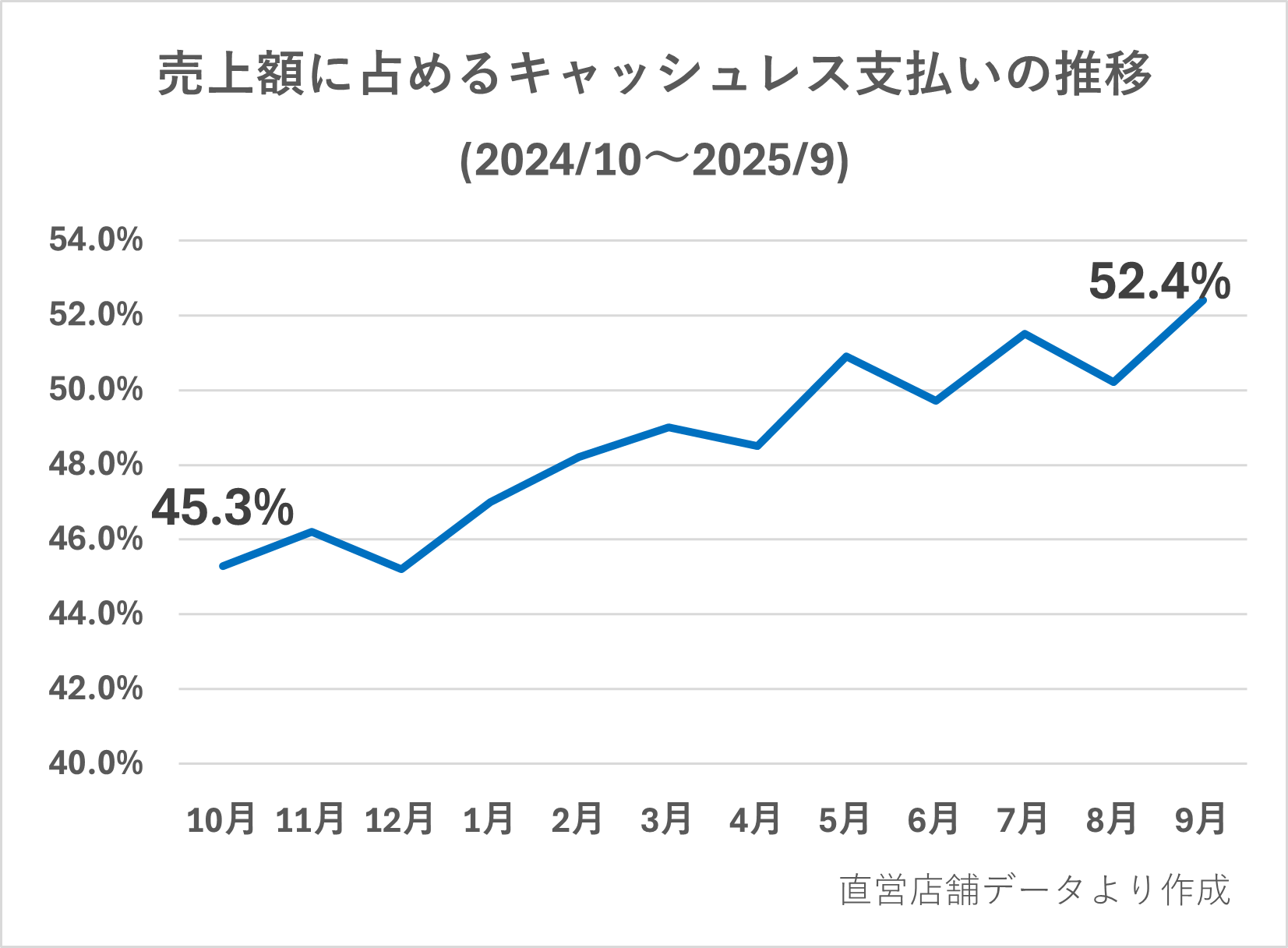 キャッシュレス決済のニーズ急増に対応。直営ではキャッシュレス決済が半数以上も!